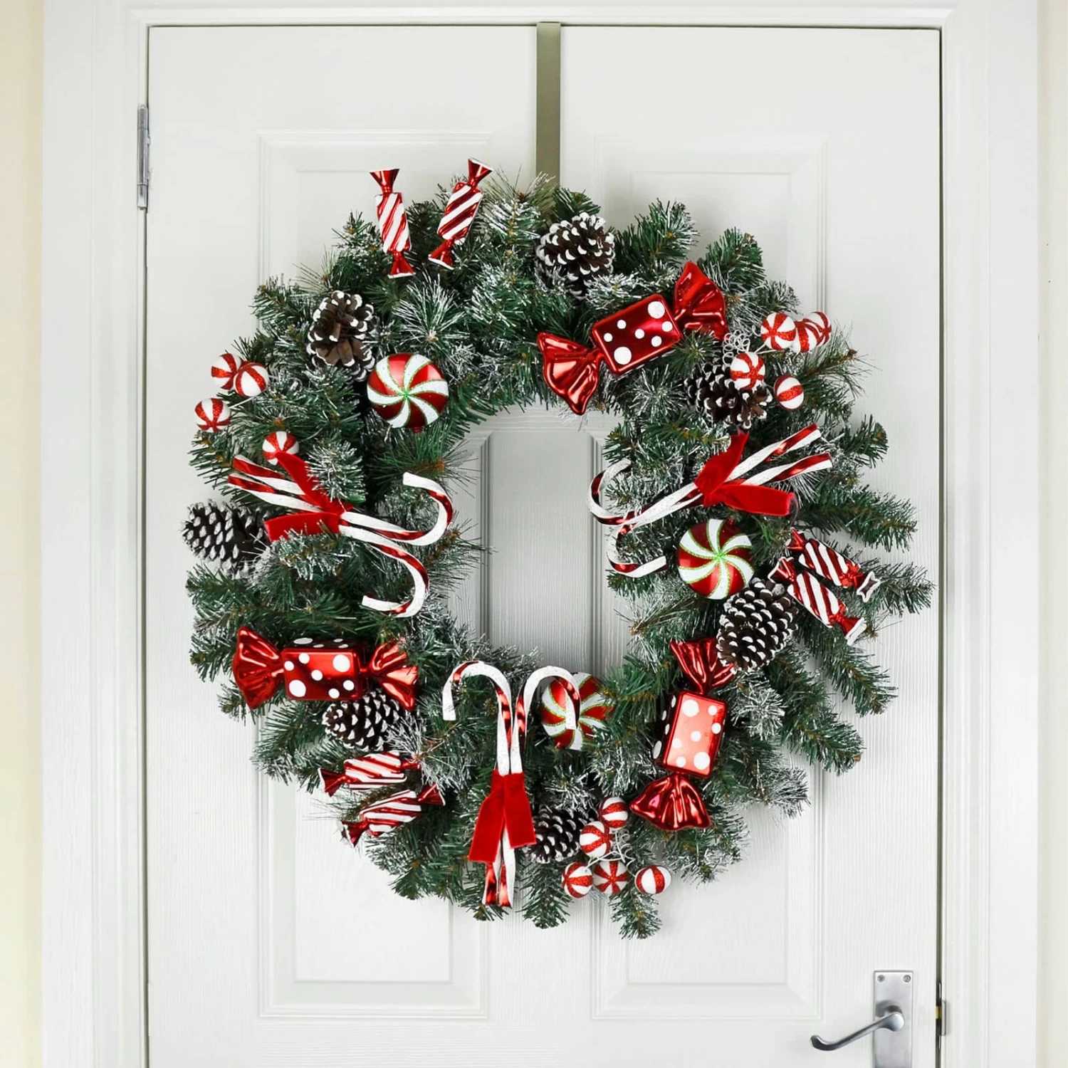 Guests will get a sweet welcome to your home with this large candy theme Christmas wreath from Mr Crimbo.
