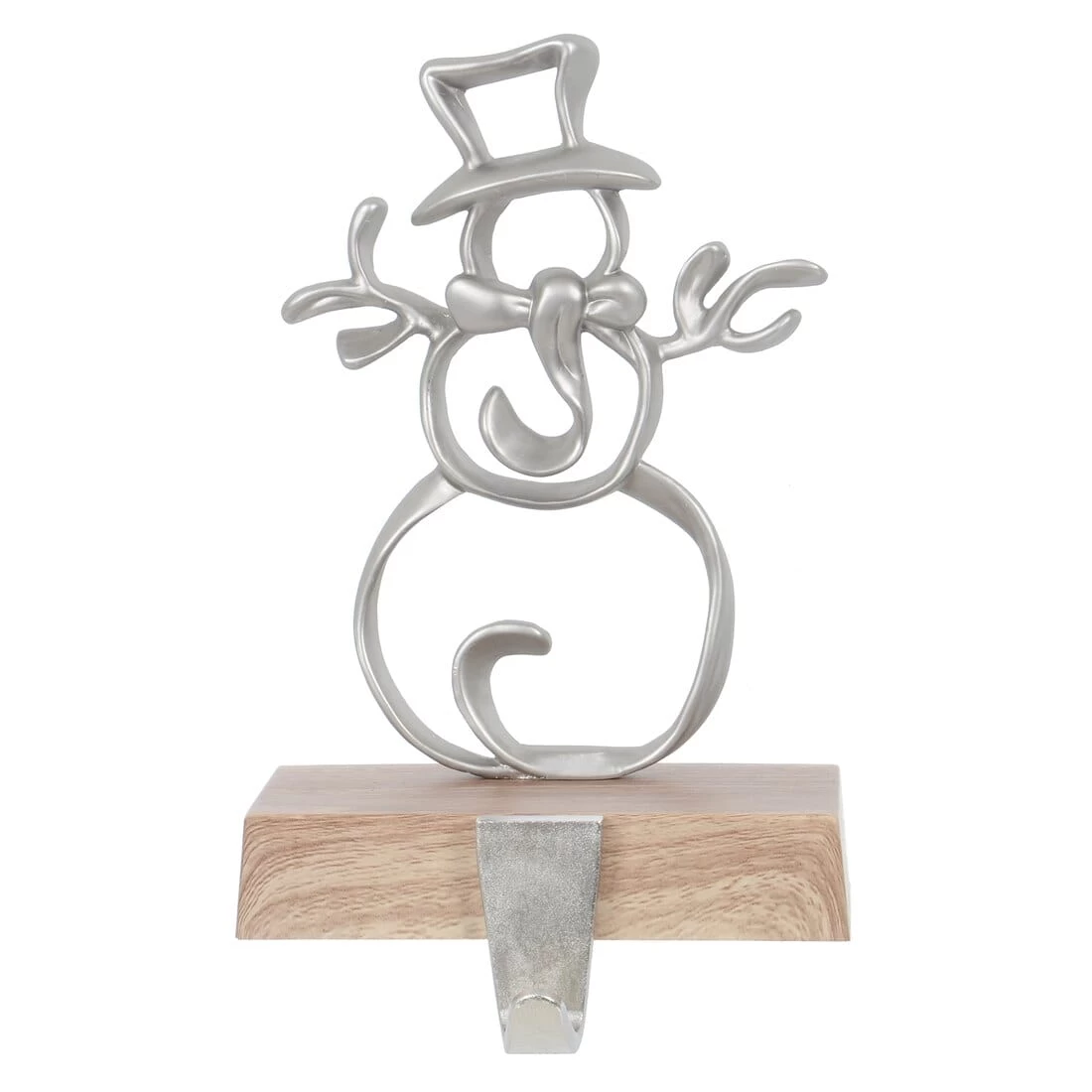 Each stocking holder is made from silver metal with a weighted faux wood vinyl base, which helps to keep it firmly in place on your shelf or mantel. Simply slip the hanging loop of your stocking over the metal hook on the base. Choose from festive Christmas tree and snowman styles.