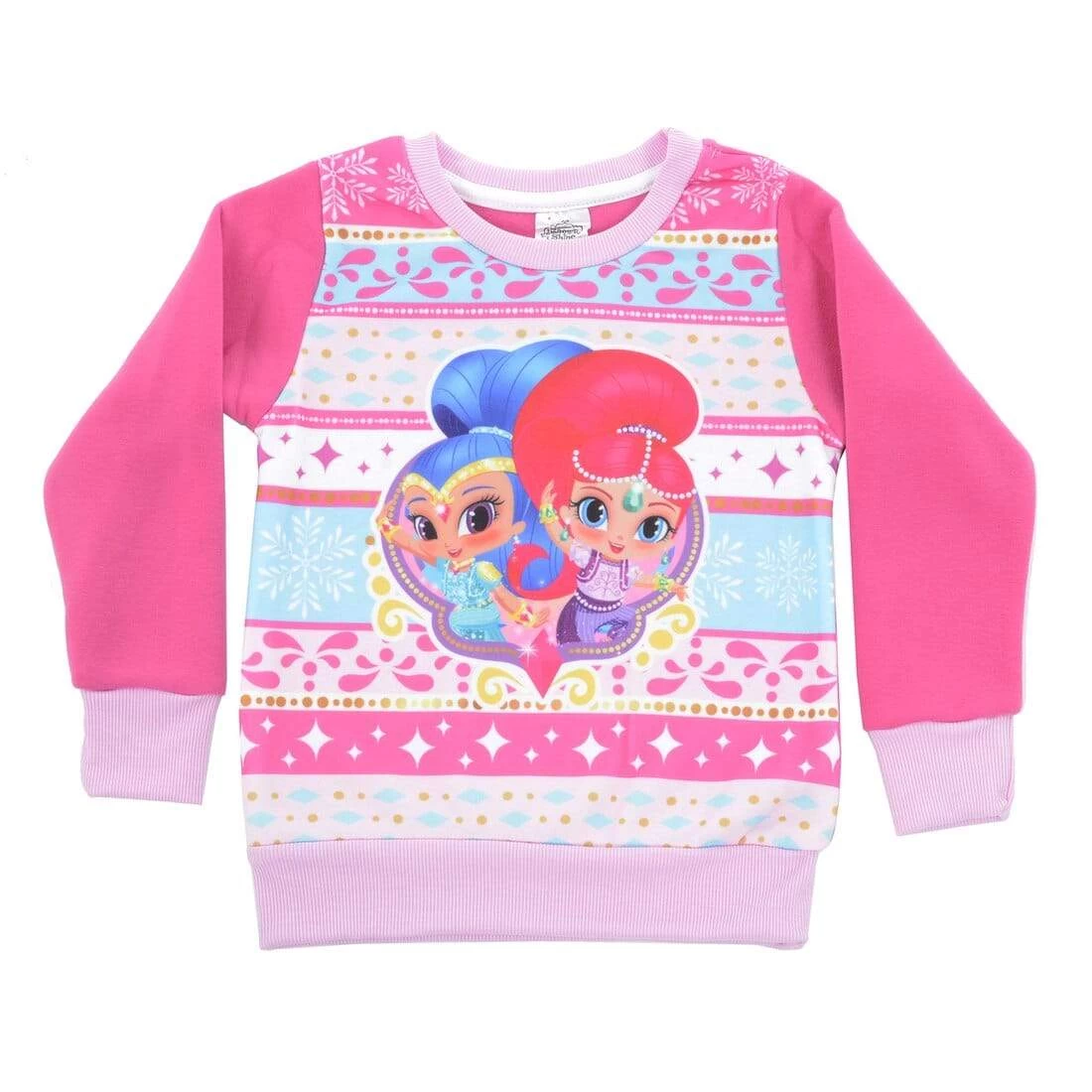 Your little princess is sure to be excited to wear this Shimmer & Shine Christmas jumper over the festive season and beyond! The light and dark pink crew neck sweater features the 2 Shimmer & Shine genies in a colour print on the front, and a pretty striped pattern. With crew neck and elastic hem and cuffs for a comfortable fit. Available in sizes 2-3 years and 4-5 years. See size chart for details