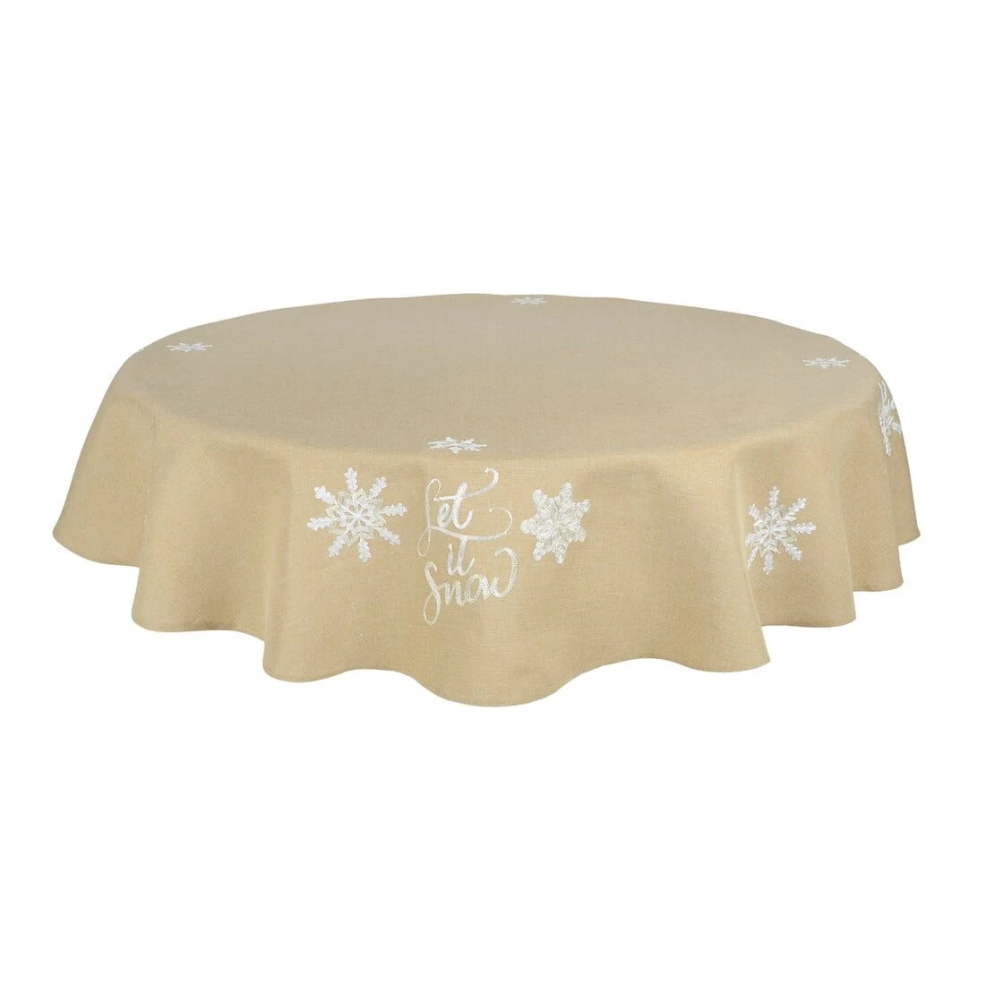 These tablecloths are available in red or a biscuit brown colour. Each table cloth features embroidered snowflakes and “Let It Snow” text.
