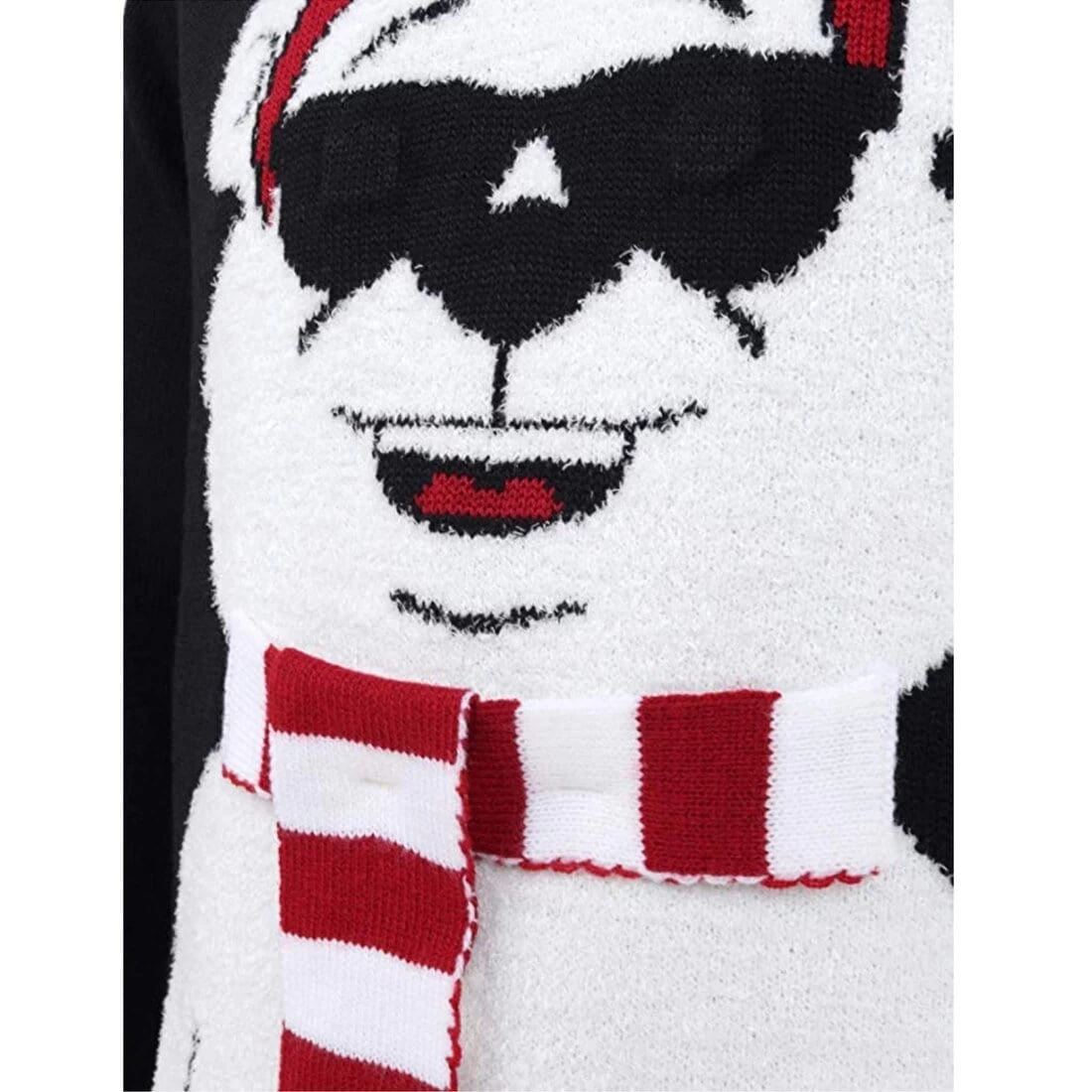 Each knitted jumper features an adorable polar bear with a scarf, sunglasses and reindeer antlers. The inside of the sunglasses have been filled with multicoloured LED lights that twinkle when you move!