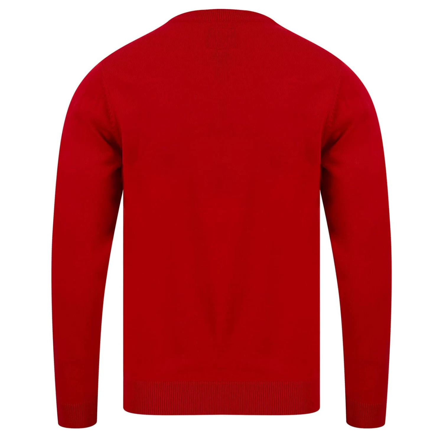 The soft knit, crew neck jumper has a smiling reindeer with a big red nose complete with its own festive jumper with mini reindeer and snowflakes.