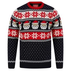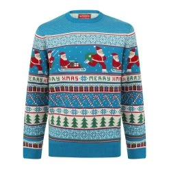 Mens Novelty Blue Christmas Jumper Santa Trees Presents Candy