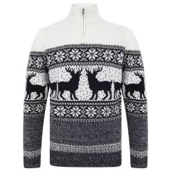 Mens Nordic Pattern Christmas Jumper Fairisle Reindeer 1/4 Zip