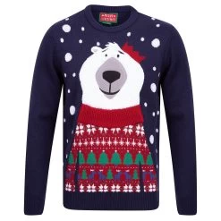 Mens Christmas Jumper Polar Bear Flashing LED Lights Snowflakes