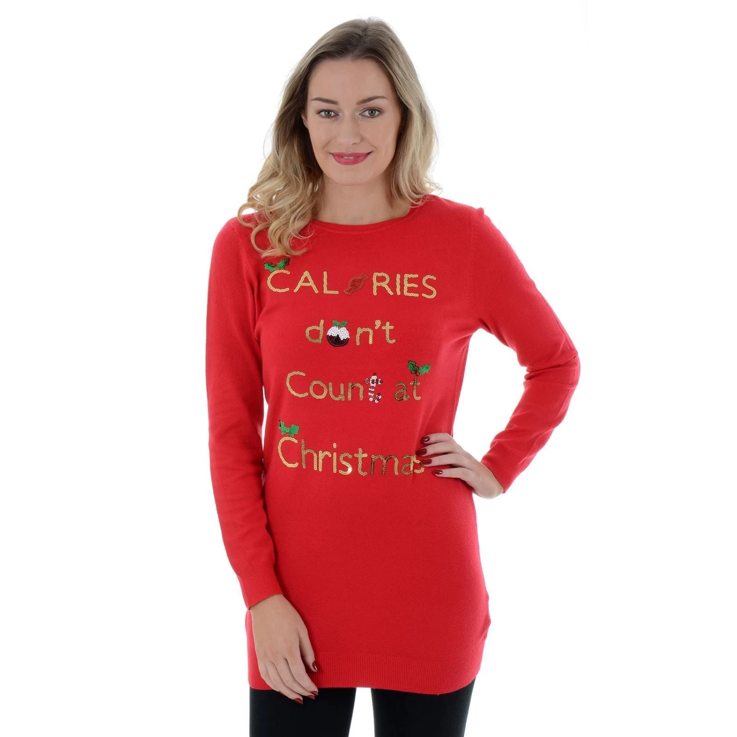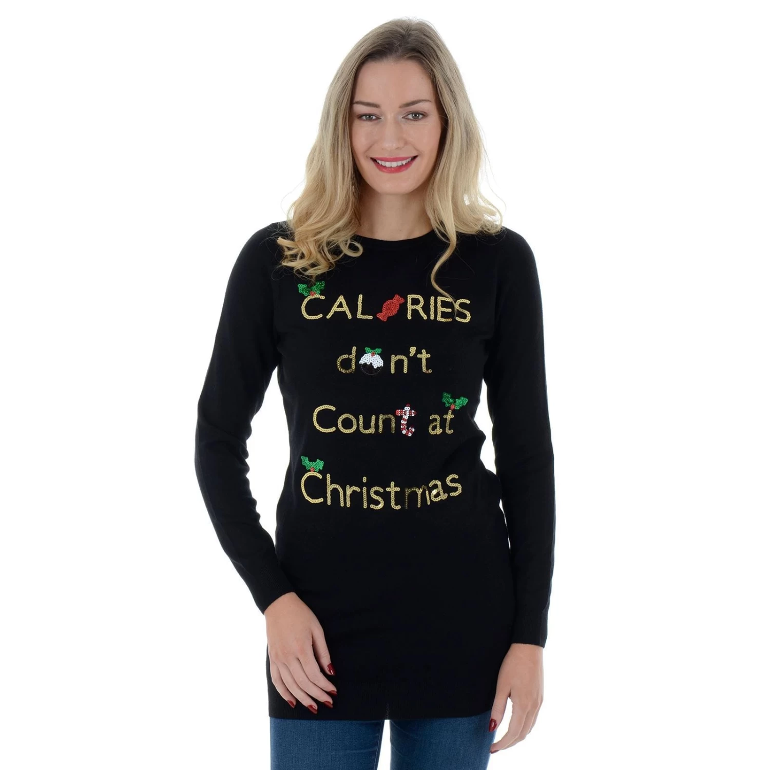 Get your wardrobe ready for the festivities with this long, novelty Christmas jumper tunic for women.
