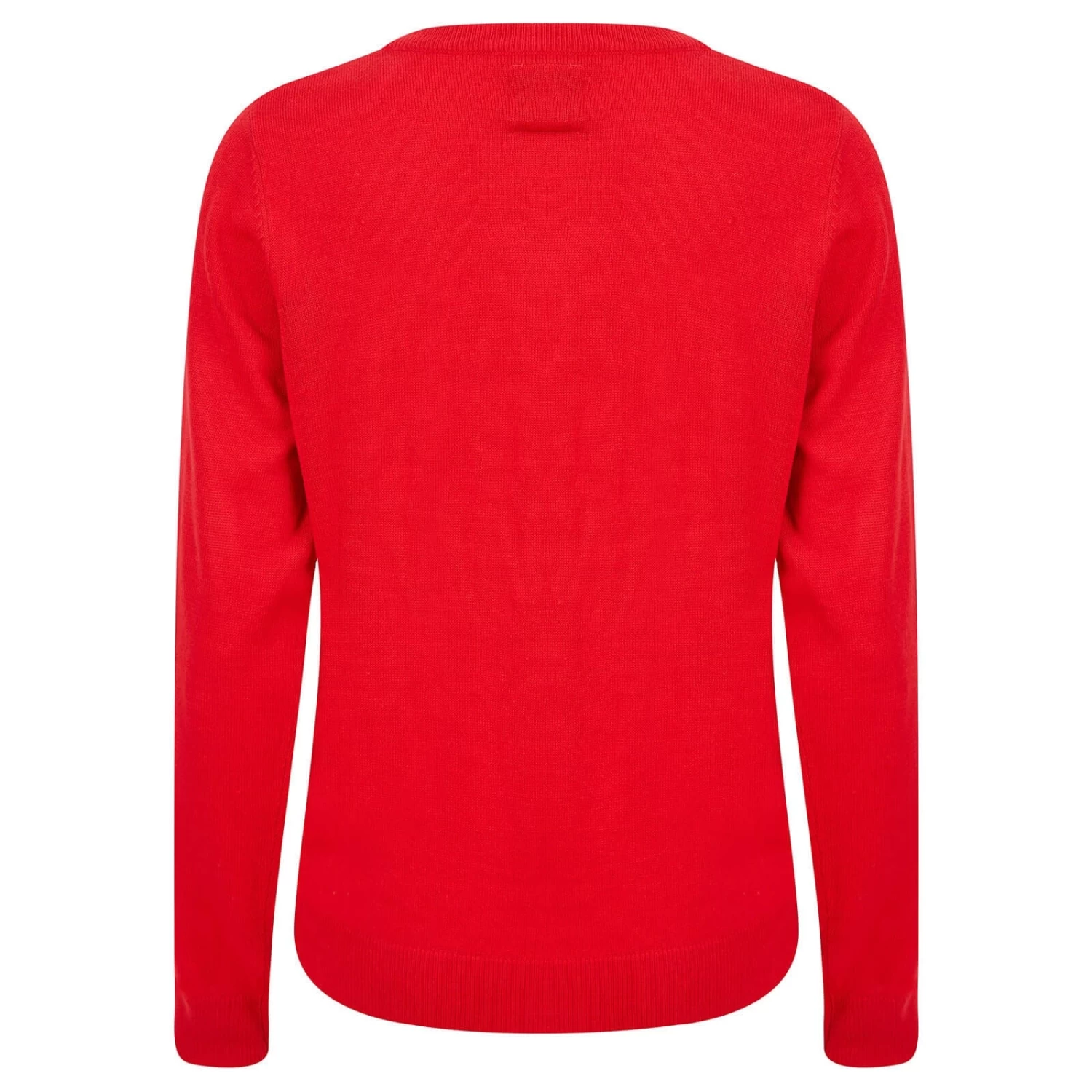 The reindeer has sparkling sequin baubles on its antlers, a big red sequin nose and a red and white knitted 3D scarf. The soft knit, crew neck Christmas jumper is available in ladies UK sizes from 10 to 18 and choose from colours Red or Gardenia or both if you can’t decide!